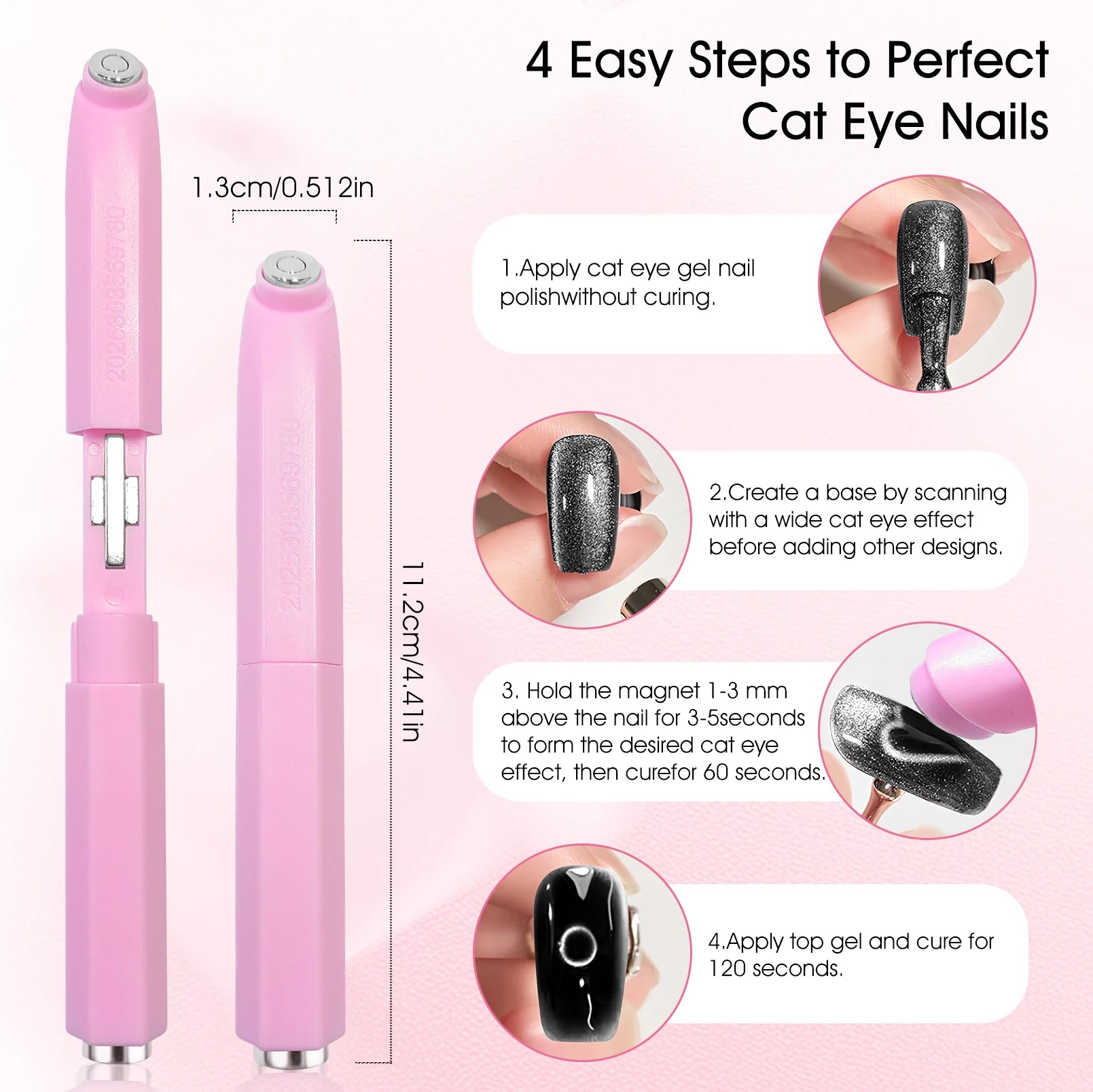 Create stunning 3D cat-eye effects and unique nail designs effortlessly with this versatile magnetic nail tool. Perfect for DIY gel nail art, it allows you to craft special velvet and aperture-shaped patterns like a professional.