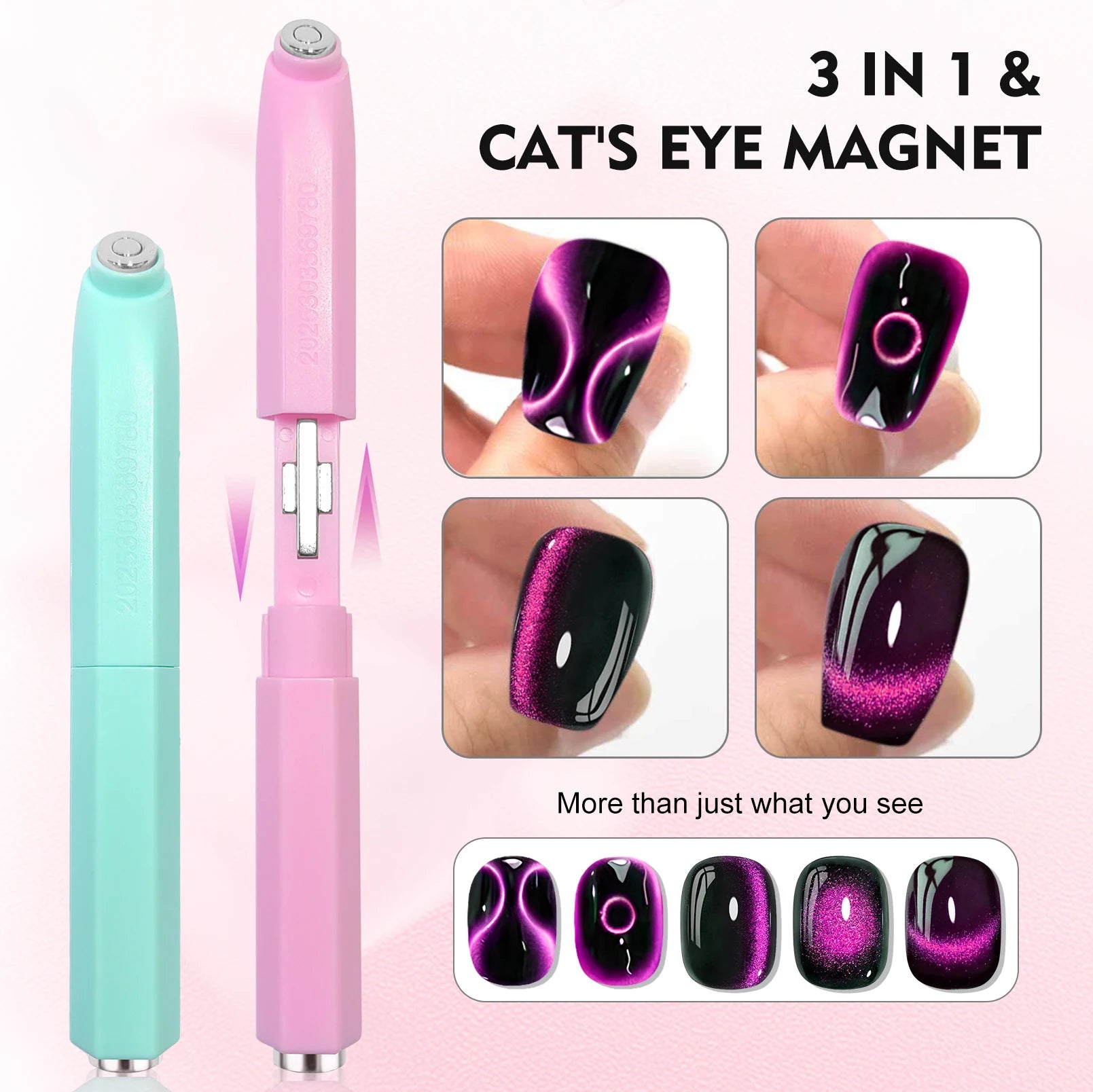 3-In-1 Design: Multiple magnetic effects in a single tool for varied nail art designs.