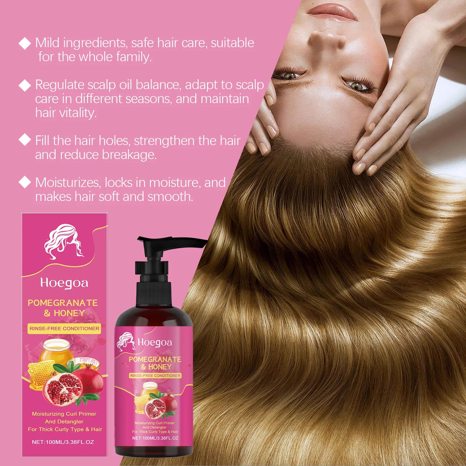 Restore softness, shine, and strength with HOEGOA Pomegranate & Honey Leave-In Conditioner. This no-rinse formula deeply nourishes dry, damaged hair while controlling frizz and enhancing natural shine. Infused with pomegranate and honey extracts, it helps repair hair from within and lock in lasting moisture without weighing it down.